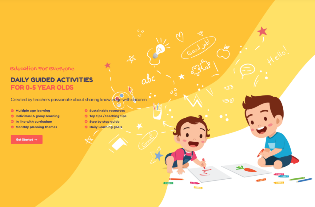 Nurseries, play-groups, preschools and childminders have access to a database & schedule of multi-age learning activities saving time, streamline their work load offering and quality education to children in line with the early learning UK government goals. Carers are guided to target different learning outcomes for multiple children taking part in one activity.